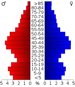 Население округа по возрастному диапазону по данным переписи 2000 года распределилось следующим образом: 24,8 % — жители младше 18 лет, 6,9 % — между 18 и 24 годами, 30 % — от 25 до 44 лет, 24,8 % — от 45 до 64 лет и 13,6 % — в возрасте 65 лет и старше. Средний возраст жителей округа составил 38 лет. На каждые 100 женщин в округе приходилось 94,5 мужчин, при этом на каждых сто женщин 18 лет и старше приходилось 91,4 мужчин также старше 18 лет.