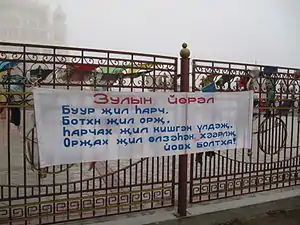 Кезə болвчн өркəснь утан hарч, (Пусть из трубы их дома всегда идёт густой дым)