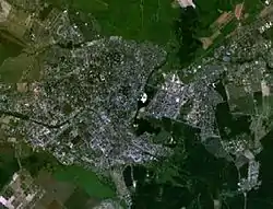 Территория Йошкар-Олы вместе с отнесёнными к ней сельскими населёнными пунктами составляет 101,45 км², в том числе непосредственно земли под городскими строениями — 56 км², остальное — пахотные земли, городские леса, сенокосы и пастбища, садовые и дачные кооперативы[21].