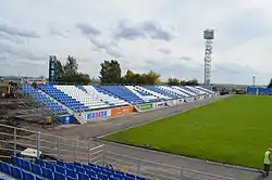 - Западная трибуна: 1674 места (из них: 1612 сидений для обычных зрителей, 16 кресел для приглашённых VIP, 84 места для инвалидных колясок, 16 мест для журналистов, кроме того 34 кресла в vip-ложе на втором этаже).