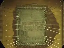 ОМК выпускался в 40-выводном металлокерамическом корпусе с окном для ультрафиолетового излучения.