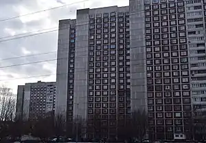 | Наружные стены | Трёхслойные навесные панели с эффективным утеплителем, толщина стен 300 мм, чаще всего облицованы мелкодисперсной фасадной плиткой |