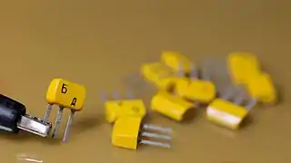 Для компьютеров, станков с ЧПУ, цветных телевизоров и аудиоаппаратуры высшего класса выпускались транзисторы повышенной надежности, в их маркировке рядом с буквой присутствовала точка.[1]