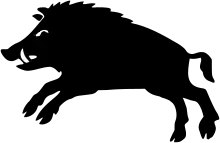 Кабан, вепрь — эмблема мужества и неустрашимости, почти всегда изображается чёрного цвета и в профиль.