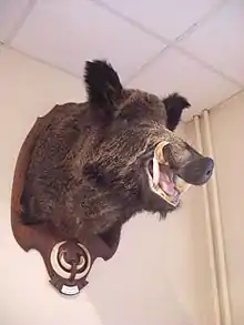 Иногда представляется одна кабанья голова (фр. la hure); причём при описании отдельно обозначается цвет глаз и клыков животного (фр. les defenses).