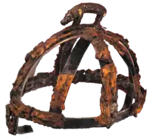 Они изготовлены из трёх железных полос — две сходились в раму конической или полусферической формы, третья была ободом (венцом). Каркас либо обтягивался кожей, либо пространство между полосами каркаса закрывали металлическими сегментами. Шлемы могли быть с наносником.