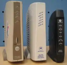 Кабельный модем — модем со встроенным сетевым мостом, предоставляющий возможность двусторонней передачи данных по коаксиальному (HFC, англ. hybrid fibre-coaxial) или оптическому кабелю (RFoG, англ. Radio Frequency over Glass). Кабельные модемы обычно используются в сетях кабельного телевидения для предоставления широкополосного доступа в Интернет. Как аналоговый модем, кабельный модем используется для отправки и приема данных, но разница в том, что скорость передачи намного быстрее. Достигнутые скорости передачи данных на 2018 год — 1 Гбит/с. Кабельные модемы подключаются к карте Ethernet внутри вашего компьютера[1].