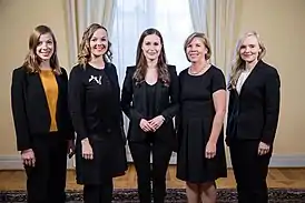 ![]() Главы партий, вошедшие в правительство. Слева направо: Ли Андерссон (Левый союз), Катри Кулмуни (Финляндский центр), Санна Марин (Социал-демократическая партия), Анна-Майя Хенрикссон (Шведская народная партия) и Мария Охисало (Зелёный союз) | |