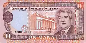 ![]() Здание Кабинета министров Туркмении на туркменских манатах | |