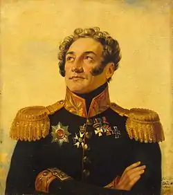 | Награды и премии | ордена Александра Невского с алмазами, Владимира 2-й ст., Св.Анны 1-й ст. с алмазами, Георгия 3-го кл., французский Почётного легиона 3-й ст.; Кульмский крест; золотая шпага «за храбрость»; знак отличия «за Военное Достоинство» 2-й ст. |