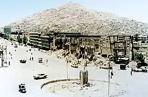 Перестройка вынудила Советский Союз прекратить участие в Афганской войне. Лишившись своего защитника, режим Наджибуллы пал[28]. В 1992 году солдаты бывшей демократической республики и множественные группировки душманов с исламистами захватывают город. Однако из-за разногласий они не сумели образовать новое временное правительство, и Кабул превратился в поле боя между группировками. За 4 года было уничтожено 80 % зданий в городе и погибло 50 000 мирных жителей, большинство бежало из города[38][39].