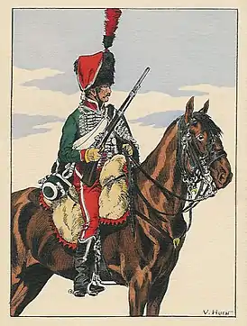 Кирасиры были одеты в металлические кирасы со шлемом, имели на вооружении палаш и два кремнёвых пистолета. Карабинеры были вооружены длинным карабином и палашом. Гусары имели укороченные карабины, кавалерийские сабли и пистолет.