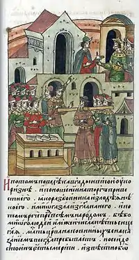 Кавгадый пленяет князя Михаила Тверского на торгу. ЛИЦЕВОЙ ЛЕТОПИСНЫЙ СВОД
