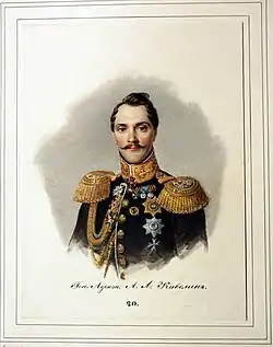 ![]() Портрет А. А. Кавелина работы И. И. Реймерса. Лист из альбома «Портреты воспитателей будущего императора Александра II». Государственный Эрмитаж[2] | |