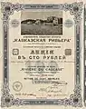 В связи с тем, что популярность Кавказской Ривьеры была чрезмерно велика, а на дальнейшее расширение курорта у ее владельца Тарнапольского не хватало собственных средств, было принято решение организовать акционерное общество, что в дальнейшем и было сделано. Устав общества был Высочайше утвержден 24 сентября 1913 года, а 25 февраля 1914 года оно приступило к своей деятельности. Основной капитал акционерного общества «Кавказская Ривьера» составлял 1 миллион 350 тысяч рублей и был разделен на 13 500 акций, которы в свою очередь были преобретены 631 акционером.[6][7]