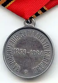 Кавказская война (1817—1864)[23] — обобщающее название военных действий Русской императорской армии, связанных с присоединением Северного Кавказа к Российской империи[24][25], и её военного противостояния с Северо-Кавказским имаматом.