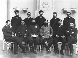 Депутаты Государственной думы Российской империи III созыва от Области войска Донского. Стоят: В. А. Харламов, В. И. Черницкий, П. Р. Пырков, И. Н. Ефремов, М. С. Воронков; сидят: Н. А. Захарьев, А. К. Петров, И. Ф. Кадацков, П. Ф. Кравцов, П. А. Плотников, М. С. Аджемов