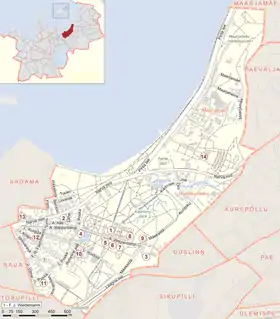 ![]() Микрорайон Кадриорг на карте Таллина (выделен красным цветом) | |