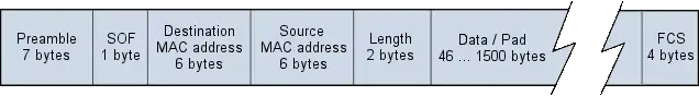 Выше представлен формат кадра Ethernet версии 802.3.