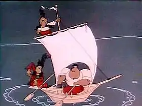 В этом мультфильме все-таки присутствуют словесные реплики (использованы материалы из мультфильма «Энеида»), но они воспроизводятся на непонятном языке.