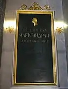 В конце XIX века рядом с царским местом, сделанным из финского гранита, под стеклом висело послание Святейшего синода об убийстве Александра II, а на соседней колонне — манифест 1815 года о Священном союзе.