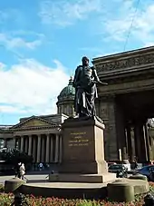 В 1837 году в честь двадцать пятой годовщины разгрома Наполеона на полуциркульной площади перед Казанским собором были торжественно открыты бронзовые памятники прославленным русским полководцам Михаилу Кутузову и Михаилу Барклаю-де-Толли. Автором проекта стал русский архитектор Василий Стасов, а фигуры полководцев были отлиты по моделям скульптора Бориса Орловского. Монументы подчёркивали мемориальное значение Казанского собора как своеобразного памятника подвигам, совершённым русскими воинами во имя Отечества.