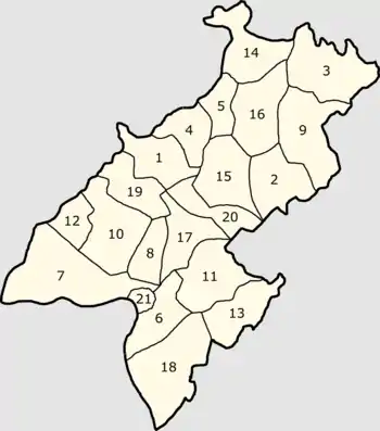 - 5-й район (штаб-квартира — д. Большая Атня): Больше-Атнинская, Больше-Менгерская и Мульминская волости;