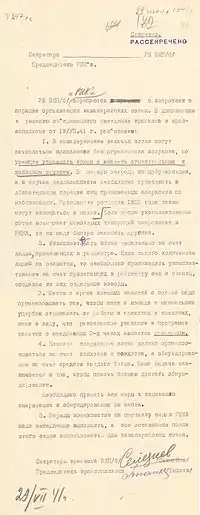 - Свердлов Я. М. Циркулярное письмо ЦК РКП(б) от 24.01.1919 — ЦГАСА. — Ф. 60/100. — Ед. хр. 10 °C. — Л. 151−153. — упомин. и цит. по Арутюнов А. А. Досье Ленина без решуши. Документы. Факты. Свидетельства — М.: «Вече», 1999. — 656 с. — ISBN 5-7838-0530-0, аттрибуция — там же: Примечание 808.