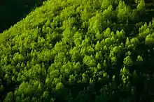 Казбегские буковые леса сосредоточены в Хдисцкальском ущелье. Поскольку они небольшие по площади, то относятся к одному фитоценотическому типу — разнотравному буковому лесу. В этих лесах вместе с буком растут берёза Литвинова и клён Траутфеттера, в подлеске встречаются единичные рябины. Разнотравный наземный покров в буковых лесах очень богат, в нём зачастую можно найти валериану липолистную, колокольчик широколистный, герань Роберта, овсяницу гигантскую, вейник тростниковидный, купену мутовчатую, подмаренник душистый[2].