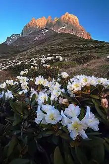 С кустарниковых фитоценозов Казбегского национального парка наиболее заметны заросли рододендрона и облепихи. Рододендровые заросли развиваются в высокогорье на открытых западных и северных склонах. В формировании этой растительной группировки принимает участие рододендрон кавказский с примесью можжевельников и черники. Другие кустарниковые заросли растут преимущественно на скалистых берегах Терека. Самые большие по площади чистые участки облепихи (до 20 га) сосредоточены на южной и северо-западной окраинах дабы Степанцминда[2].
