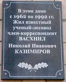 В Петрозаводске на доме по ул. Куйбышева, в котором жил Н. И. Казимиров, установлена памятная доска.