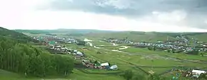 Находится на месте впадения в реку Большой Кизил реки Большой Казмаш.