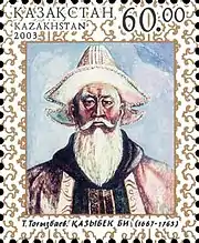 Казыбек Кельдибекулы — известный в народе как Каз дауысты Казыбек («Казыбек, непревзойдённый в слове и слоге», буквально «Казыбек с непревзойдённым голосом»), получивший это название, как говорит легенда, от заклятого врага казахов, Хунтайджи Галдан Цэрэна, поражённого и загипнотизированного его красноречием.