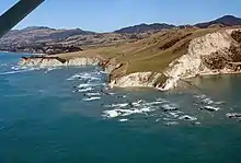 Прибойная полоса полуострова Каикоура представляет собой чрезвычайно длинную область образования волн. Окружающая среда полуострова подвержена воздействию высокоэнергетических эрозионных процессов. Высокоэнергетические штормы, обсуловленные прохождением циклонических впадин над Новой Зеландией, могут происходить здесь в любое время года, и прерывают длительные периоды относительного затишья. Побережье Каикоуры является мезоприливным со средней величиной приливов от 1,36 метра до 2,57 метра. Прибрежная зона полуострова подвержена воздействию преобладающих направлений распространения волн и находится в приливной зоне. Следовательно, как морские эрозионные силы, так и субаэральные процессы выветривания способствуют эрозии[4].