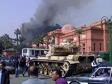 Во время народных демонстраций 28 января 2011 года мародёрами были разбиты несколько витрин и опустошена касса, после чего была создана «живая цепочка» вокруг музея из сознательных демонстрантов для защиты экспонатов[5]. Затем музей был взят под защиту армейских подразделений[6]. Как сообщил государственный министр по делам древностей Египта Захи Хавасс, после проведённой в музее инвентаризации в списке украденных музейных ценностей по меньшей мере 18 артефактов. Среди них две позолоченные деревянные статуи фараона Тутанхамона, статуя Нефертити, статуэтка писца, а также сердце скарабея[7].
