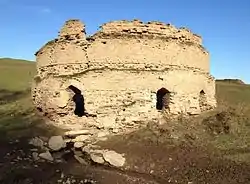 Ротонда возведена из жжёного квадратного кирпича (24—27 × 24—27 × 5 см), который выжигался на местности, со включением более древних кирпичей, по-видимому, взятых из предшествующих строений. Кладка выполнена на ганчхаке (смесь ганча и глины), с явной небрежностью, несёт следы ремонтов[1][4].