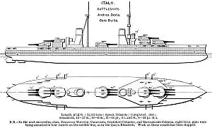 ![]() Схема линейных кораблей типа «Андреа Дориа» |