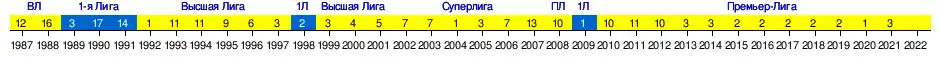 1954 год. С 1954 по 1991 годы выступал в чемпионате СССР, из них 24 сезона в Высшей лиге.