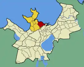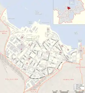 ![]() Микрорайон Каламая на карте Таллина (выделен красным цветом) | |