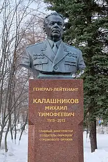 Михаи́л Тимофе́евич Кала́шников (10 ноября 1919, Курья, Алтайская губерния — 23 декабря 2013, Ижевск, Россия)[5][6] — советский и российский конструктор стрелкового оружия. Доктор технических наук (1971), генерал-лейтенант (1999), создатель всемирно известного автомата Калашникова (АК).