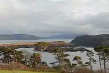 Калв, вид на юго-восточное побережье острова с поля для гольфа посёлка Тобермори