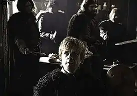 ![]() В кульминации эпизода Тириона Ланнистера окружают новые союзники Кейтилин Старк | |||||