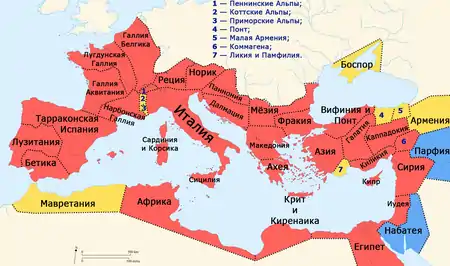 Личные предпочтения Калигулы отразились на политике в Восточном Средиземноморье. Так, в начале 37 года, ещё при жизни Тиберия, наместник Сирии Вителлий отправился на юг, чтобы помочь тетрарху Галилеи и Переи Ироду Антипе вторгнуться в Набатейское царство. В Иерусалиме Вителлий узнал о смерти Тиберия и остановил продвижение на юг, ожидая указаний от нового императора. Калигула занял противоположную позицию по отношению к набатеям и всячески поддерживал их правителя Арету IV[217][207]. Причиной такого тёплого отношения, вероятно, была помощь, которую Арета оказывал отцу Калигулы. Свою роль сыграла и неприязнь к Ироду Антипе, вызванная дружбой императора с претендовавшим на власть в Иудее Иродом Агриппой[218].