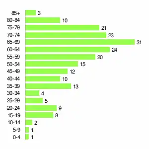 | Жителей | 515 | 670 | 787 | 644 | 546 | 450 | 371 | 294 | 212 |