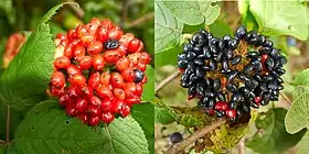 Плоды приплюснутые или яйцевидные, зелёные, по мере созревания меняют окраску, становясь сначала красными, затем — чёрными.