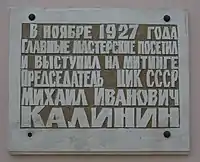 - Сашонко В. Н. Калинин в Петербурге — Ленинграде. Л.: Лениздат, 1977. С. 15.