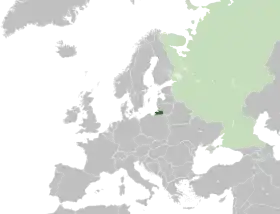 Расположена в Центральной Европе. На юге граничит с Польшей, на севере и востоке — с Литвой (см. границу Калининградской области). На западе омывается Балтийским морем и его заливами — Куршским и Калининградским (Вислинским). Площадь — 15,125 тыс. км² (13,3 тыс. км² за вычетом площади заливов).