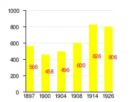 | 1897[9] | 1900[10] | 1904[11] | 1908[12] | 1914[5] | 1926[13] |
