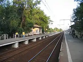Для пригородных поездов используется два пути. Две боковые платформы, на одной из которых имеются навес и билетная касса. Не оборудована турникетами.