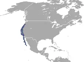 Область распространения вида простирается вдоль американского тихоокеанского побережья от Колумбии на юг через Орегон и Калифорнию до Калифорнийского полуострова. Восточную границу ареала образует Сьерра-Невада[5].